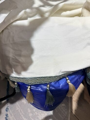 - Декор: кистевые подхваты в тон, тесьма по низу с кисточками и бусинами.