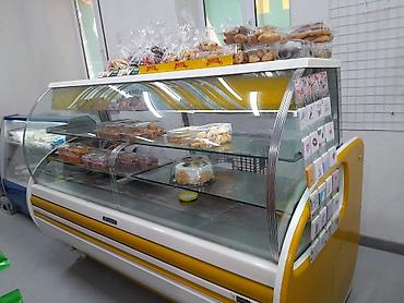 Идеальна для пекарни, кафе, мини‑пекарни при магазине и отделов кулинарии: обеспечивает эффектную подачу продукции и поддержание стабильной температуры хранения. Размер — полноразмерная напольная витрина с округлыми торцами (ширина ориентировочно около 1,8–2 м по визуальной оценке).