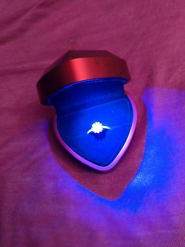 - Встроенная LED‑подсветка: при открытии крышки загорается холодный белый свет, красиво подсвечивает камень и оправу