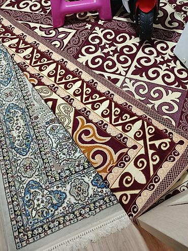 Ковер с восточным орнаментом Ковер размер 3/2.5 м цена по каждый штуке 4000 сом 2 шт в комплекте продаем - Тип: напольный ковер - Форма: прямоугольный - Цвета: бордовый и бежевый (центральное поле...