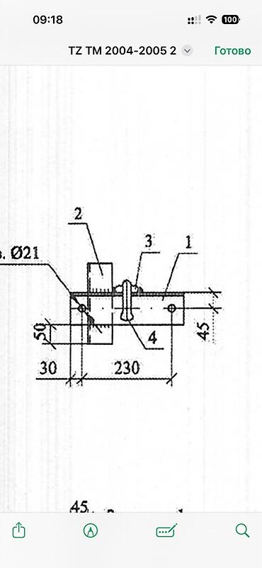 - Детали с маркировкой по ТЗ ТМ 2004–2005 (габариты на чертеже: длина базы 230 мм, площадка 50×30 мм, полка 45 мм; отверстия Ø21 мм).
