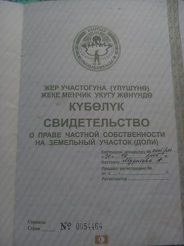 Государственный акт о праве частной собственности на земельный участок в селе Баш Карасуу,Байтик айыл окмоту Описание: - Официальное издание в красной твердой обложке с тиснением герба и надписью...
