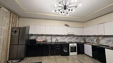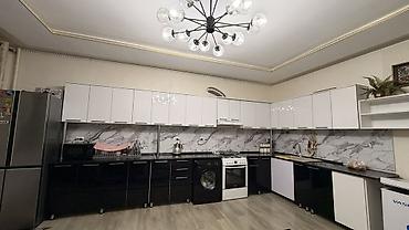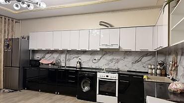 - Современный дизайн: верх – глянец белый, низ – глянец черный, фартук под мрамор по всей длине рабочей зоны.