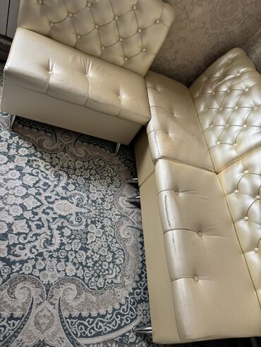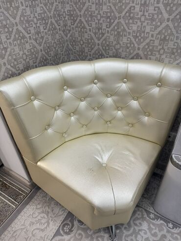 - Обивка: светлая экокожа с капитоне (каретная стяжка с пуговицами).