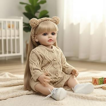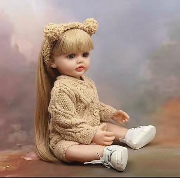 Кукла реборн 60 см. Распродажа, новая кукла, цена 5 000 сом - Реалистичный внешний вид: детальные черты лица, выразительные голубые глаза, длинные светло‑русые кудри с бантом. - Говорит: более 50 ...