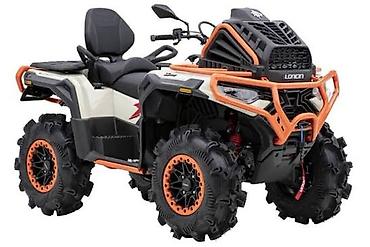 Отправка есть в России Loncin XWolf 1000 mud — мощный квадроцикл с V-образным 976-кубовым двигателем (≈98 л.с.), жидкостным охлаждением и EFI впрыском, оснащенный вариатором с режимами 2WD/4WD/4WD-LOCK, независимой подвеской (двухрычажной), дисковыми тормозами, легкосплавными дисками, лебедкой, большим 33-литровым баком и способен развивать скорость до 120 км/ч, предлагая высокий уровень проходимости.
