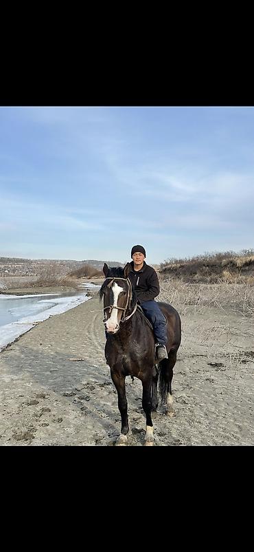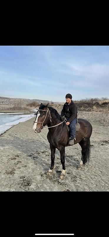 Продаётся лошадь, масть воронo-гнедая с белой проточиной и белыми отметинами на ногах. Крепкое телосложение, хорошо развитая мускулатура, широкая грудь. Спокойный, уравновешенный характер, уверенно идёт под седлом по пересечённой местности и вдоль воды.Отлично бегает.Рост 170+. Лет 6. Адрес бишкек мраморный Ак чий , привезли из России 17 декабря .