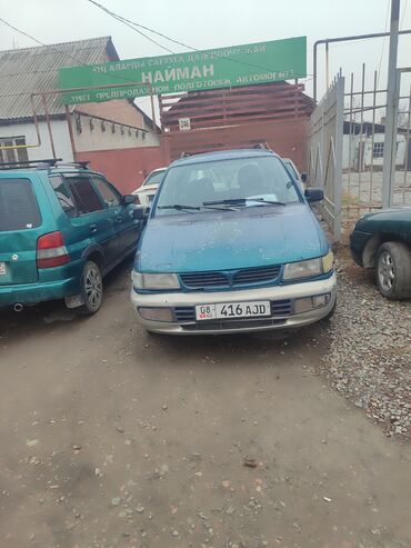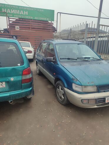 Минивэн Mitsubishi Space Runner/Chariot (первого поколения), с левым рулём. Кузов 5‑дверный, цвет сине‑серебристый, установлены рейлинги на крыше. Передняя оптика — галогенная, противотуманные секции в бампере. Колёса на легкосплавных дисках, резина всесезонная. Багажная дверь вертикальная, задние фонари классической формы.