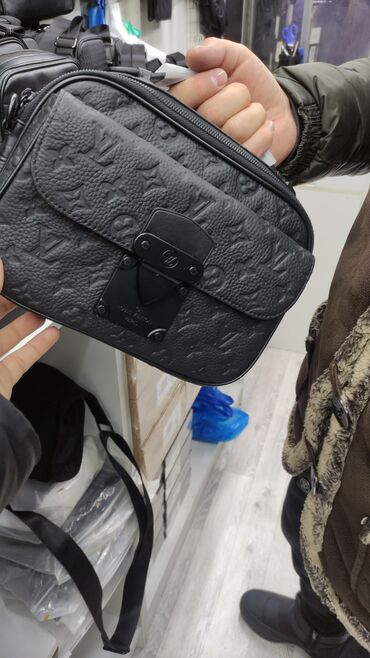 - Модель с тиснением монограммы и клапаном на защёлке. Закрытие на молнию сверху, дополнительный карман под клапаном, регулируемый ремень.