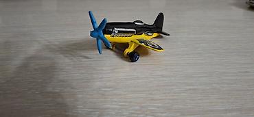 - Винтовой самолет: черно‑желтая раскраска крыльев, голубой четырехлопастный винт, шасси‑колесики для катания.