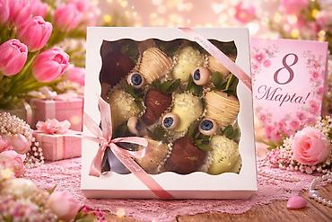 Клубника в шоколаде — вкусный подарок для любого повода. Что внутри: - Отборная свежая клубника, покрытая молочным, темным и белым шоколадом. - Разнообразные декоры: шоколадные полоски, хрустящие ...