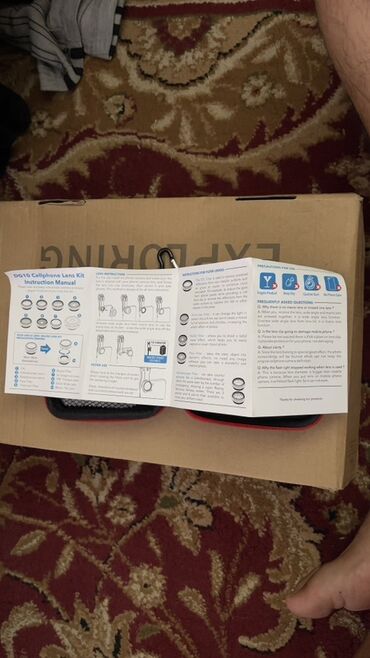 НовыйНабор объективов для мобильного телефона с четырьмя различными линзами и креплением. В комплект входит салфетка для очистки линз. Все компоненты хранятся в компактном красном чехле на молнии с карабином для удобной переноски. Отличное решение для тех, кто хочет расширить возможности фотографии на своем смартфоне.