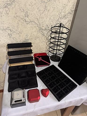 Идеально для оформления витрины, фотосъёмки и транспортировки украшений: колец, серёг, подвесок, браслетов и часов. Цветовое оформление в чёрном и красном — подчёркивает блеск изделий и подходит под большинство интерьеров. На фото — весь комплект.