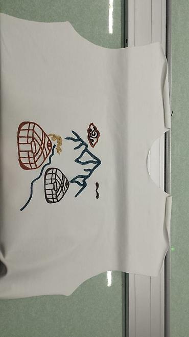 - Материал основы: светлая ткань (трикотаж/кулирка по ощущению на фото), стабилизирована флизелином для ровной посадки стежков.
