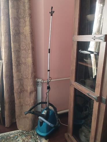 - Мощный напольный отпариватель с телескопической стойкой и верхним крючком/плечиками для подвешивания вещей.