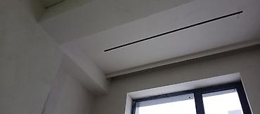 - Линейная выемка вдоль окна: аккуратная геометрия, ровные плоскости, сформирован полок для скрытого размещения профиля.