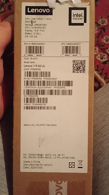 Ноутбук Lenovo V15 G2 IJL, цвет Black. Характеристики по наклейке: -