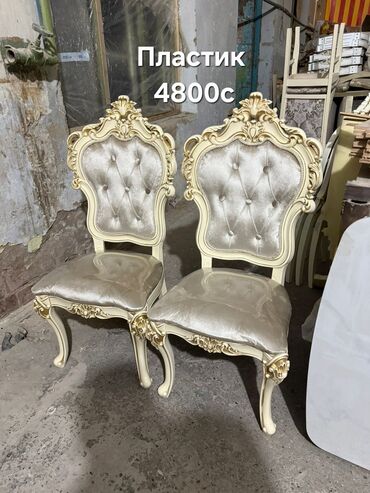 Классические обеденные стулья в стиле барокко/рококо. - Материал: пластиковый каркас с декоративными золочёными элементами. - Спинка: мягкая, с капитона (пуговицы), резной верх с завитками. - Сиде...Вход•Регистрация