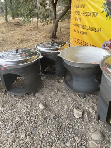 Сдаём в аренду казаны и очок. Казан объемом 15л в комплект входит. 15л-250сом 30л-300сом 80л-400сом 100 л500сом 120 600с 150 л 700с 220л-800с Титан 700сом Мангал 300сом Самовар 5литр 300сом 8литр....