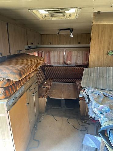 Дом на колесах/караван одноосный - Планировка: передняя гостиная с диванами, которые раскладываются в спальное место; отдельная зона с обеденным столом, трансформируется в кровать. Множество верхн...