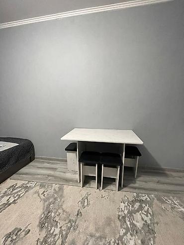 - Обеденная зона: компактный стол и четыре табурета.