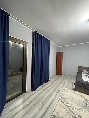 - Просторная комната с большим окном/дверью на террасу, плотные тёмно‑синие шторы для полного затемнения.