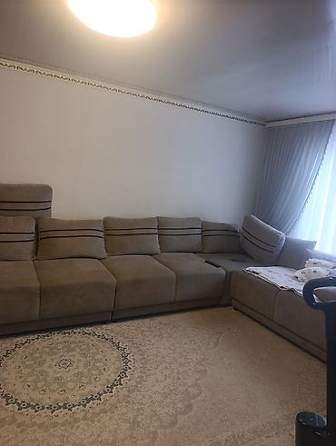 - Планировка внутри: просторная гостиная с большим угловым диваном и ковровым покрытием; отдельная столовая/кухня-столовая с обеденным столом, настенным телевизором и естественным освещением.