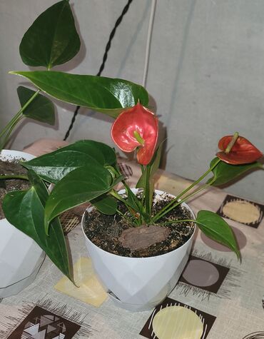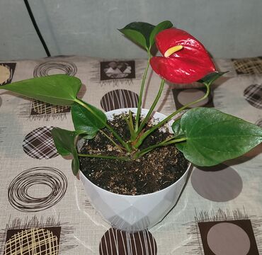 Укорененные растенияПродаю антуриумы ,цветут всегда постоянно,один цветок может цвести до 7-9 месяцев, очень красивые,неприхотливые,эффектные, в народе мужское счастье , есть два сорта первый великан с огромными цветами большой куст будет очень красивый цена на него 1500сом, другие среднего размера по 800сом, все цветы в отличном Специально подобрано грунте,адаптированны, не голландские, не погибнут!!!