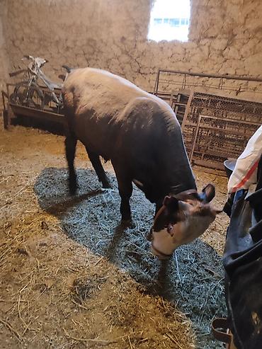 Карова чёрного окраса. - Молодое животное, компактное телосложение, короткая блестящая шерсть. - Небольшие рога, крепкая конституция, широкая грудь. - Содержится в стойле, кормление сеном и зелёно...