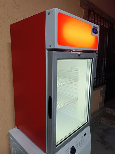 Торговый холодильный шкаф с прозрачной дверью - Брендинг на козырьке: Huaxing Chen liegui (подсветка рекламной панели вверху). - Одностеклянная распашная дверь с двойным стеклопакетом и ручкой по ...