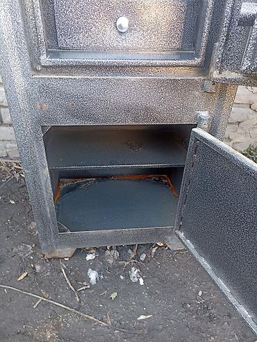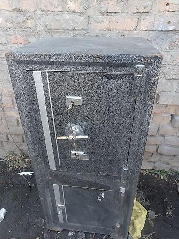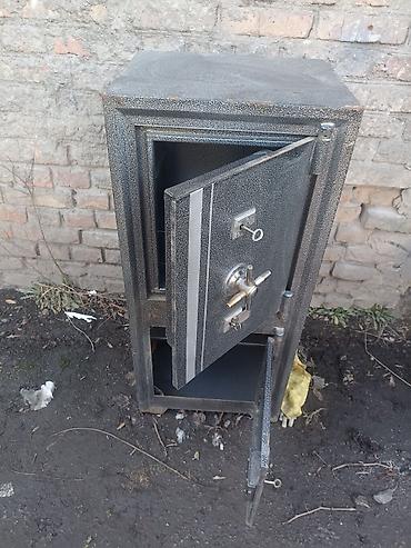 Металлический сейф (тяжёлый, из толстостенной стали), советского типа. Характеристики: - Корпус: сварной металл, массивные стенки. - Дверь на петлях с верхним штурвалом-рукояткой для запирания. - ...