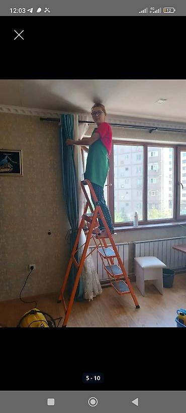- Чистка потолков, осветительных приборов, карнизов и штор (снятие/повеска по запросу)