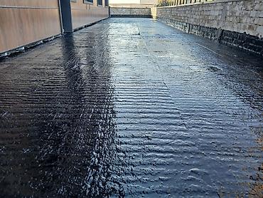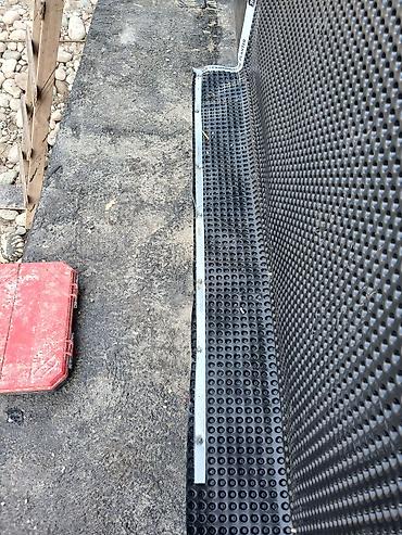 - установка профилированной дренажной мембраны (пупырчатая ПЭ-мембрана) с прижимными планками и герметизацией кромок;
