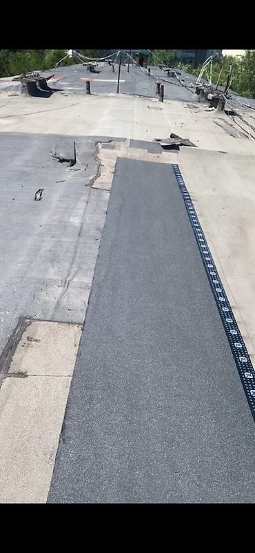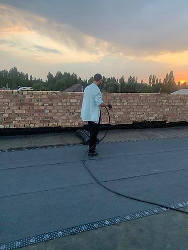 - Технология: подготовка основания (очистка, просушка, праймирование), проплавление газовыми горелками, прокатка швов, обработка узлов проходов и парапетов, устройство уклонных карт для водоотвода.