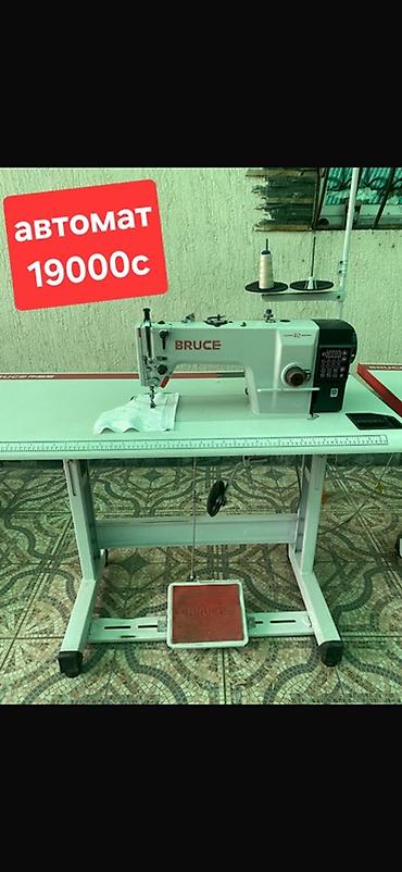 2) Прямая строчка BRUCE (автомат) — одноигольная машина с автоматикой: обрезка нити, закрепка, позиционирование иглы, панель управления на корпусе. Встроенный энергоэффективный серводвигатель, светлая рабочая поверхность, стол на устойчивой раме, линейка на столе.