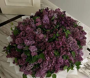 - Состав: свежесрезанная садовая сирень разных оттенков лилового и белого, с зеленью. Плотная укладка ветвей создает объемный, ароматный букет.