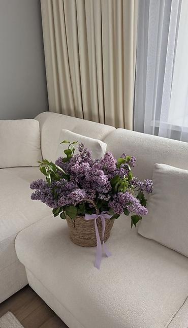 - Возможна вариация оттенков сирени в одной корзине — от светло‑лилового до насыщенного пурпурного, а также добавление белых ветвей по желанию.