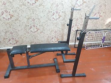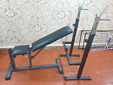 Силовая скамья со стойками под штангу, регулируемая.