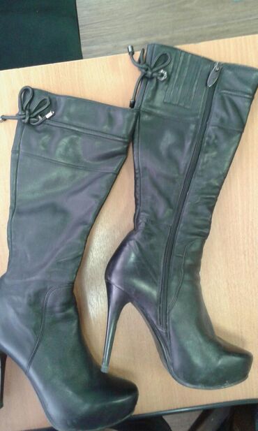 Продаётся: зимние женские сапоги, раз-35-36 на узкую ногу можно, натураль-я кожа и мягкий натурураль-й овчинный мех, каблук на шпильках, одета два раза, состояние как новая. Прошу 3599сом
