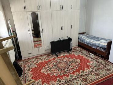 - Жилая зона с односпальной кроватью, большим трехсекционным шкафом с зеркалом, обогревателем и ковром.