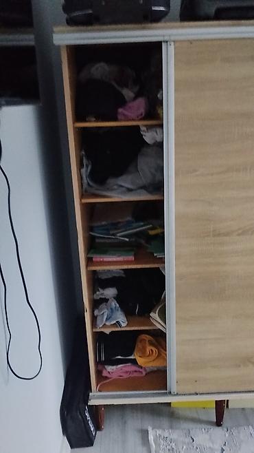 - Левая секция — ряд открытых полок по всей высоте для одежды, белья, книг и мелочей.