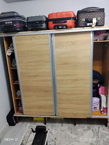 - Центральная и правая секции закрываются раздвижными дверями; внутри — комбинированные полки и ниши для объемных вещей.