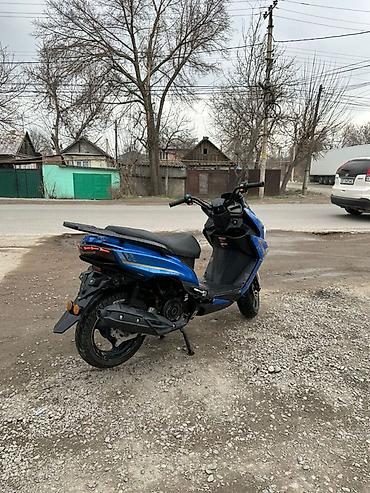 Скутер классического городского формата, с ярким синим кузовом и белым передним крылом. Компоновка — низкая удобная посадка, плоский пол и двухместное сиденье с небольшим багажным кофром-площадкой сзади.