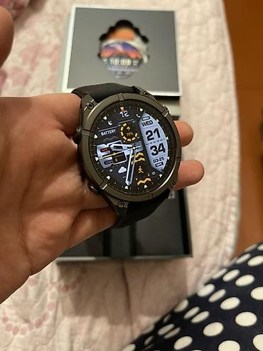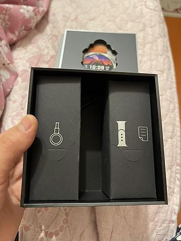 - Комплектация на фото: часы, модуль зарядки (магнитный), ремешок/аксессуары, документация, фирменная коробка