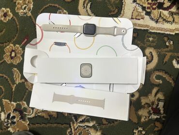 Цвет: корпус серебристый, ремешок бежевый. Размер дисплея — полноэкранный прямоугольный форм‑фактор. Поддержка магнитной зарядки.