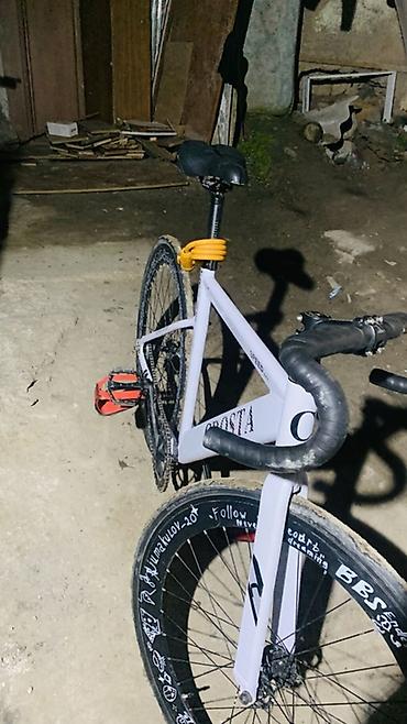 - Рама: трековая геометрия, жесткая, окраска белая с логотипом “CROSTA” (на трубе).