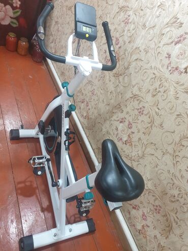 Подходит для домашних кардио‑занятий, интервальных тренировок и подготовки к велосезону. Цвет: белый с чёрными и бирюзовыми элементами.
