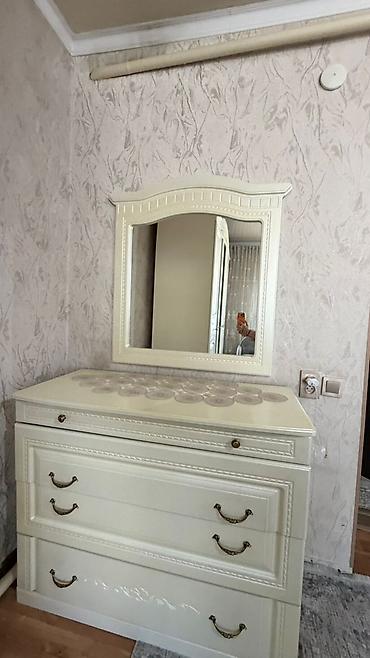 - Зеркальные поверхности на шкафу и отдельное большое зеркало у комода.