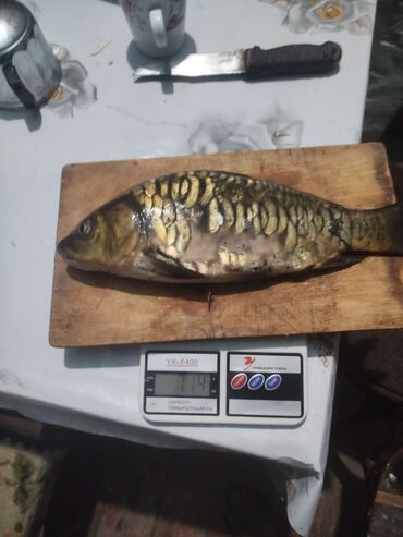рыба, вылов местный. На фото — карп/(чешуйчатый и зеркальный), каждый экземпляр взвешен на электронных весах YK-F400. Примерные веса на фото: - 525 г — зеркальный карп - 714 г — зеркальный карп - ...