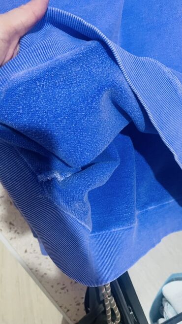 - Ткань: плотный футер с мягким начесом внутри (на фото видно пушистую изнанку), держит форму и сохраняет тепло.